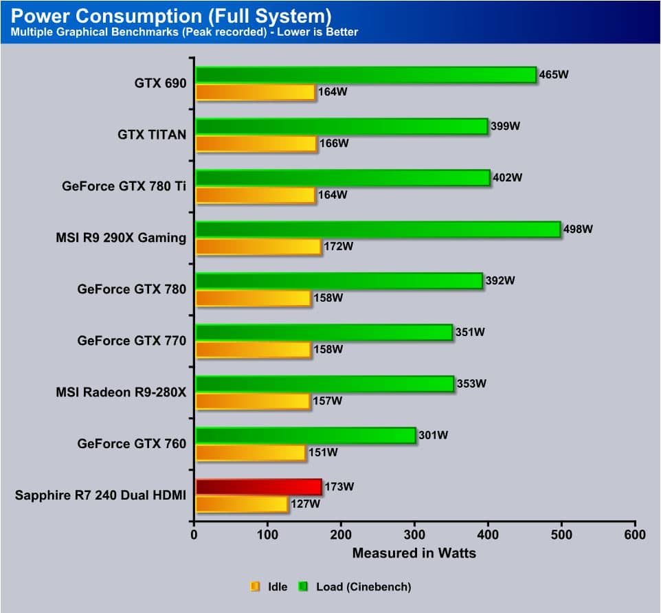 The R7-240 requires only slot power and due to this it simply was not power hungry at all.