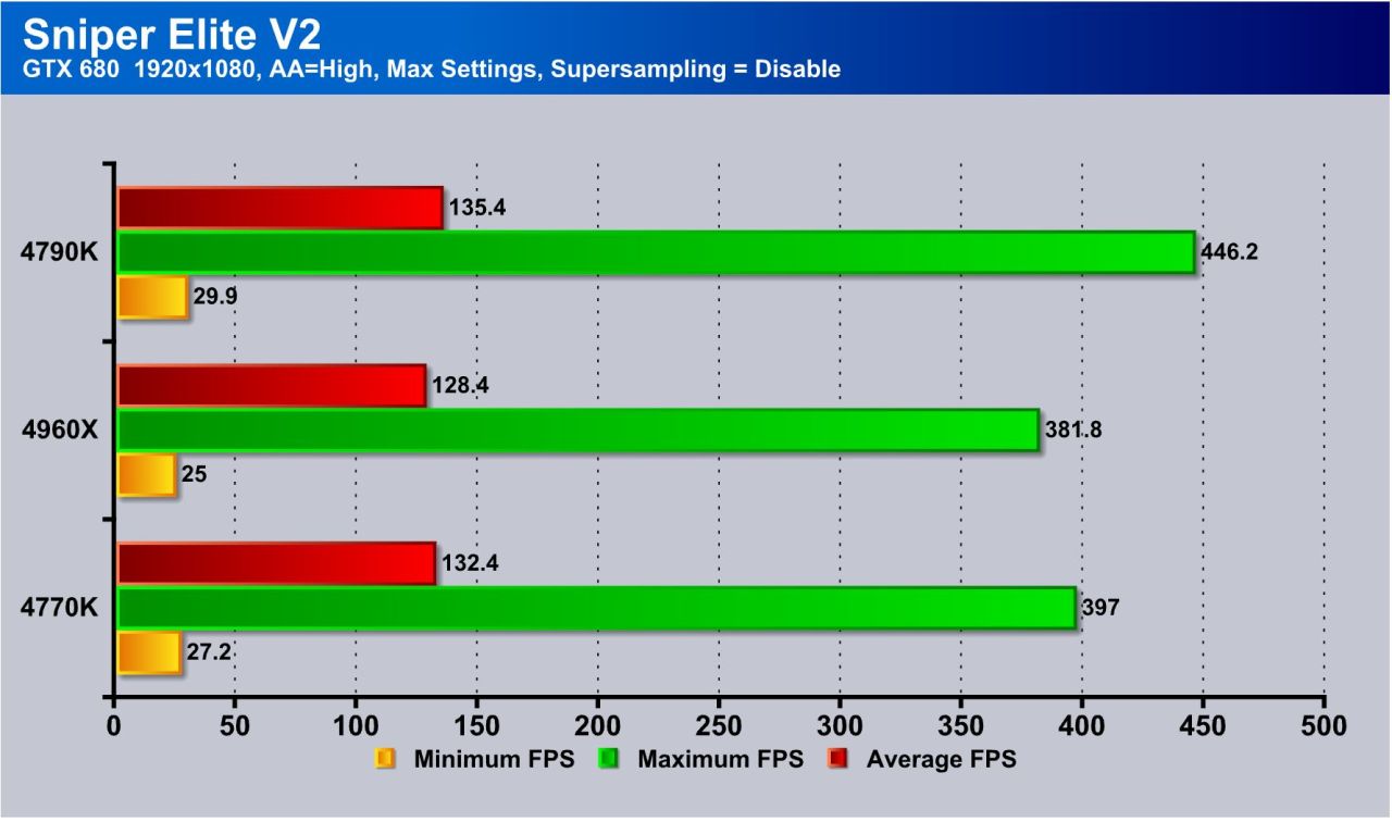 The Sniper Elite V2 results are not surprising as I have seen before that the game runs at such a high framerate it responds to speed bumps on the CPU side a bit more than other heavier loading titles.