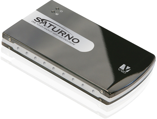 VIZO SATURNO, 2.5” SATA hard drive one touch backup enclosure, is SATA to USB 2.0 / eSATA enclosure which provides interface not only SATA to USB 2.0, but also SATA to eSATA .Fully support 2.5” SATA hard drive. Furthermore, SATURNO has the added advantage of dual one-touch backup buttons for system and file under USB 2.0 host. You can backup/restore or synchronize task just by one touch. With SATURNO, its slim, compact and portable design allows you to bring it wherever you go. It is great convenient of you to back up and transfer your data storage anywhere for your needs.