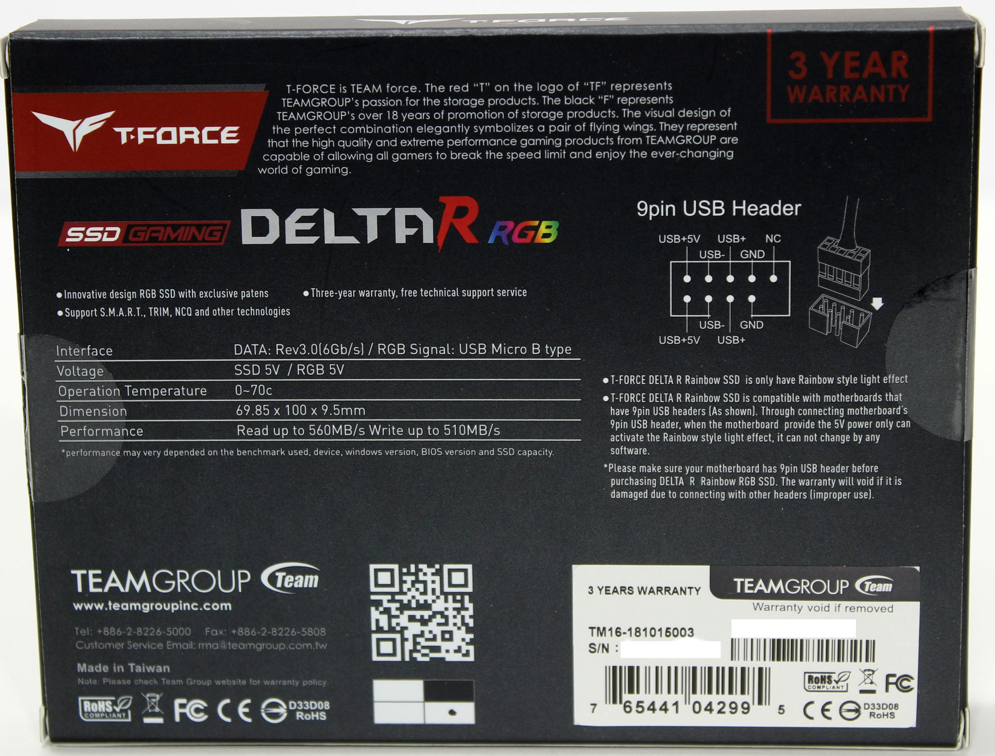 The packaging for the drive is eye catching enough that if you were buying it off of a store shelf it could grab your attention. I must give Team Group credit as they do mention that the TForce Delta R RGB SSD does require a 9 pin USB connector and that it is NOT adjustable via software. But as I am living proof people do not read packaging as I searched and tried my best to control this drive to no avail. I will say that I tested a USB A to micro USB cable and the RGB effect work normally which means that they simply needed a 5V power for the RGB. This means they could have run the SSD from the SATA power connector and omitted the extra connection entirely.