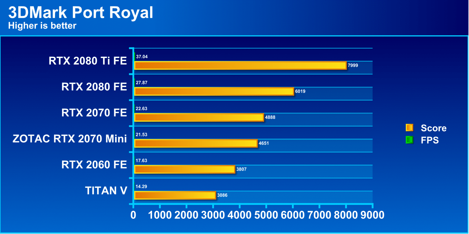 As you can see here, rough is the word of the day with Port Royal. This shows that it brings even the mighty 2080 Ti to its knees. This is likely the worst case scenario for ray tracing and im ok with this as this sets a really high bar for future products.
