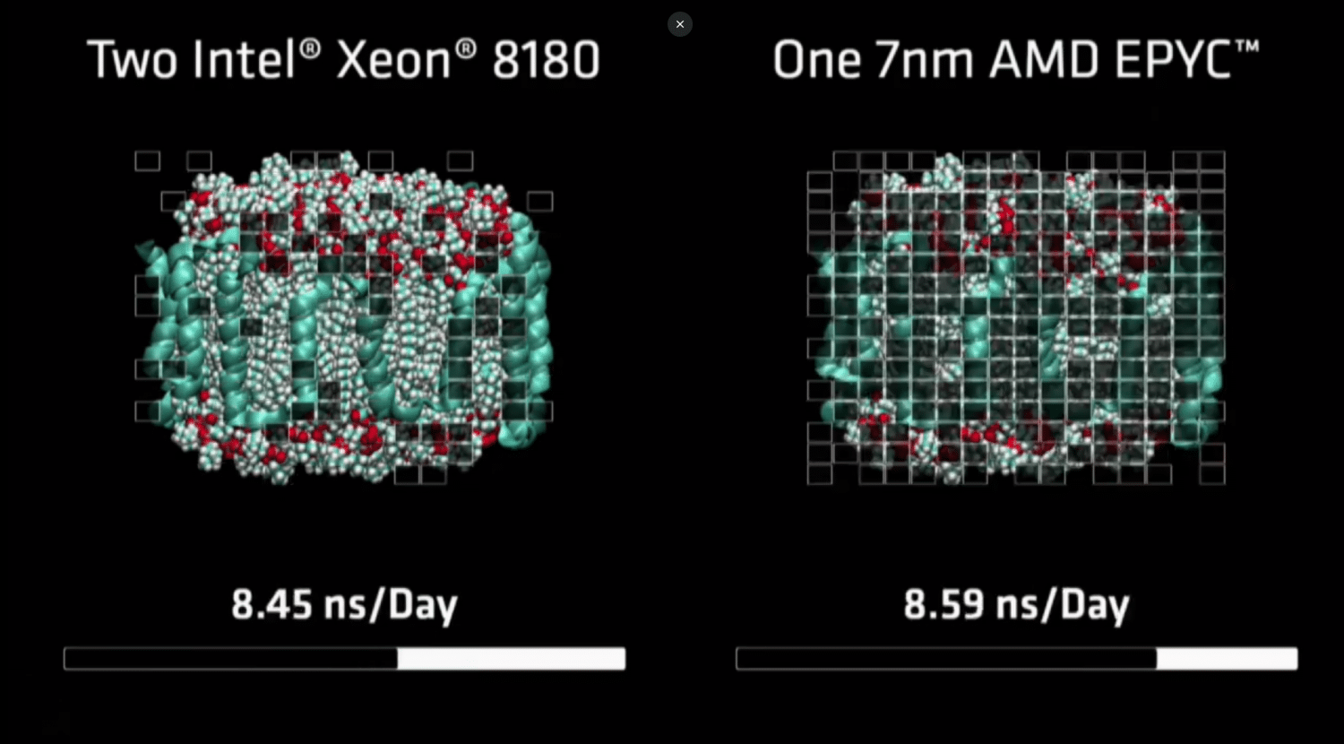 First up is EPYC, and with this AMD decided a good demo would be to compare a single EPYC 7nm chip vs two Intel Xeon 8180 chips.