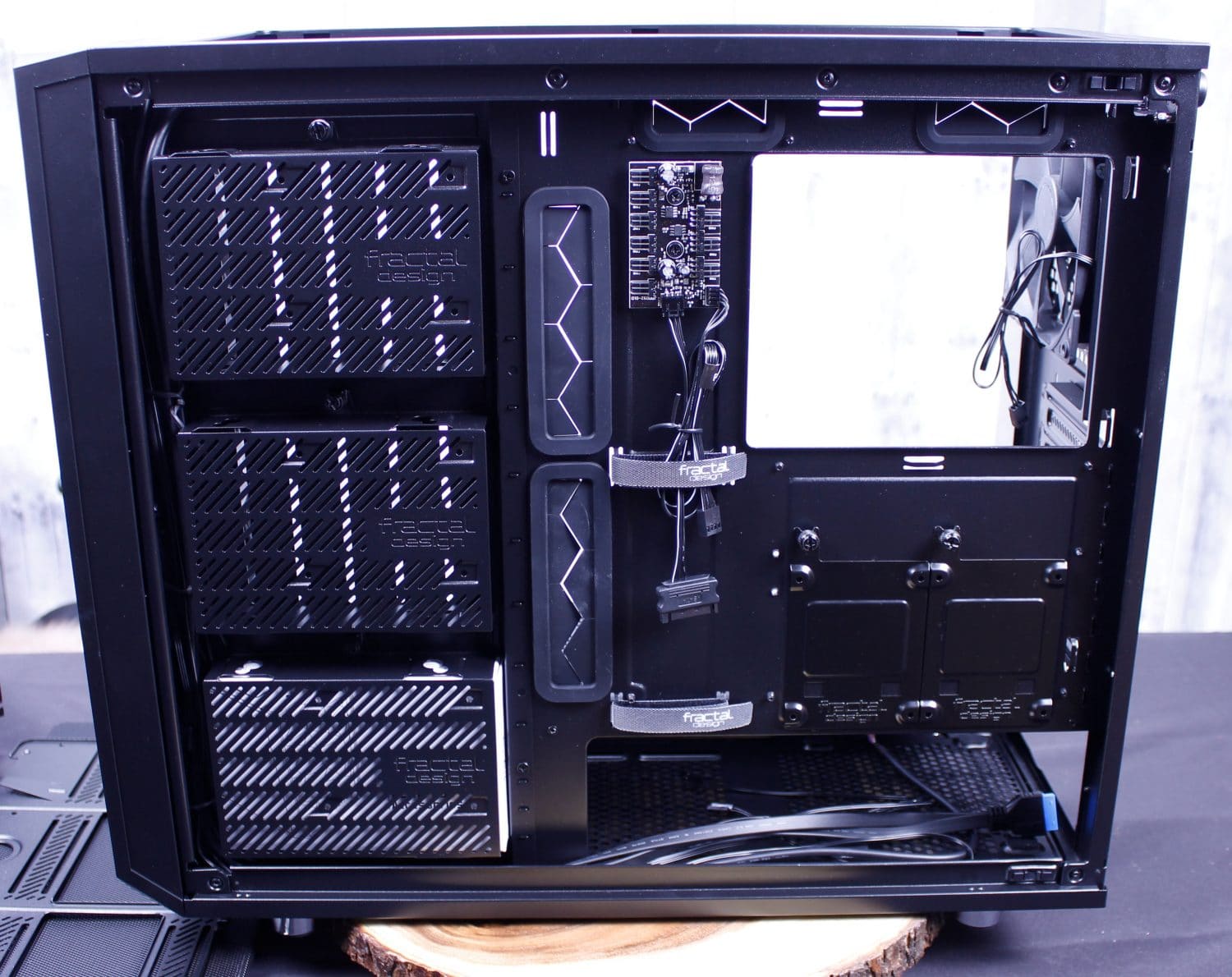 The cabling which was tightly cinched in place also hid the front fan cables I did not even notice until later when I was building the rig. they are coiled up and tucked under the front panel cabling, which some less experienced users may think they have connected already due to the fan hub and the lack of visible cabling.