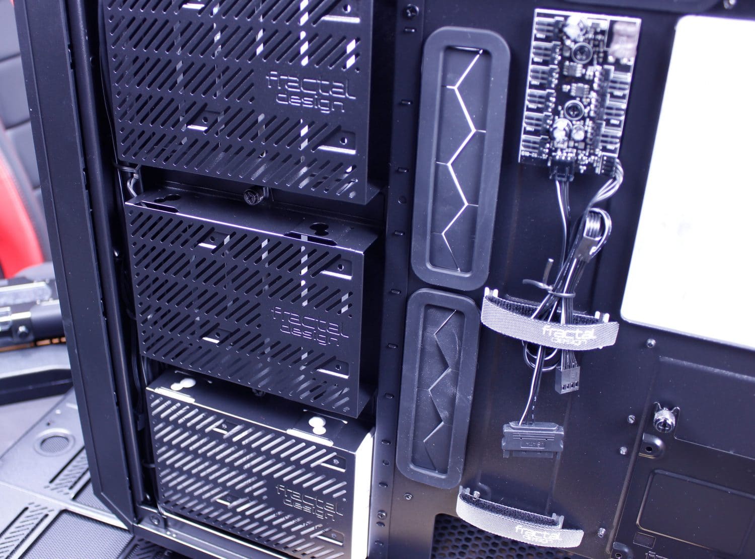 First up with the total overview you can see the 3x 3.5″ cages which can also each mount a 2.5″ drive if you don’t have any mechanical spinners to put in there.