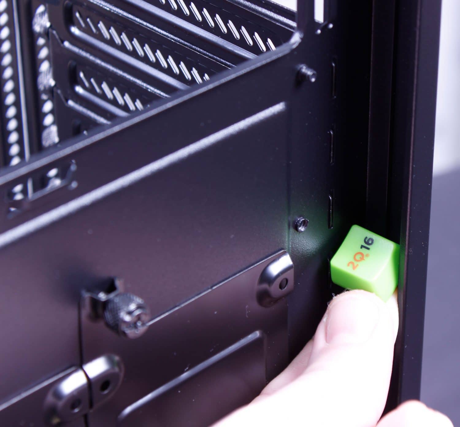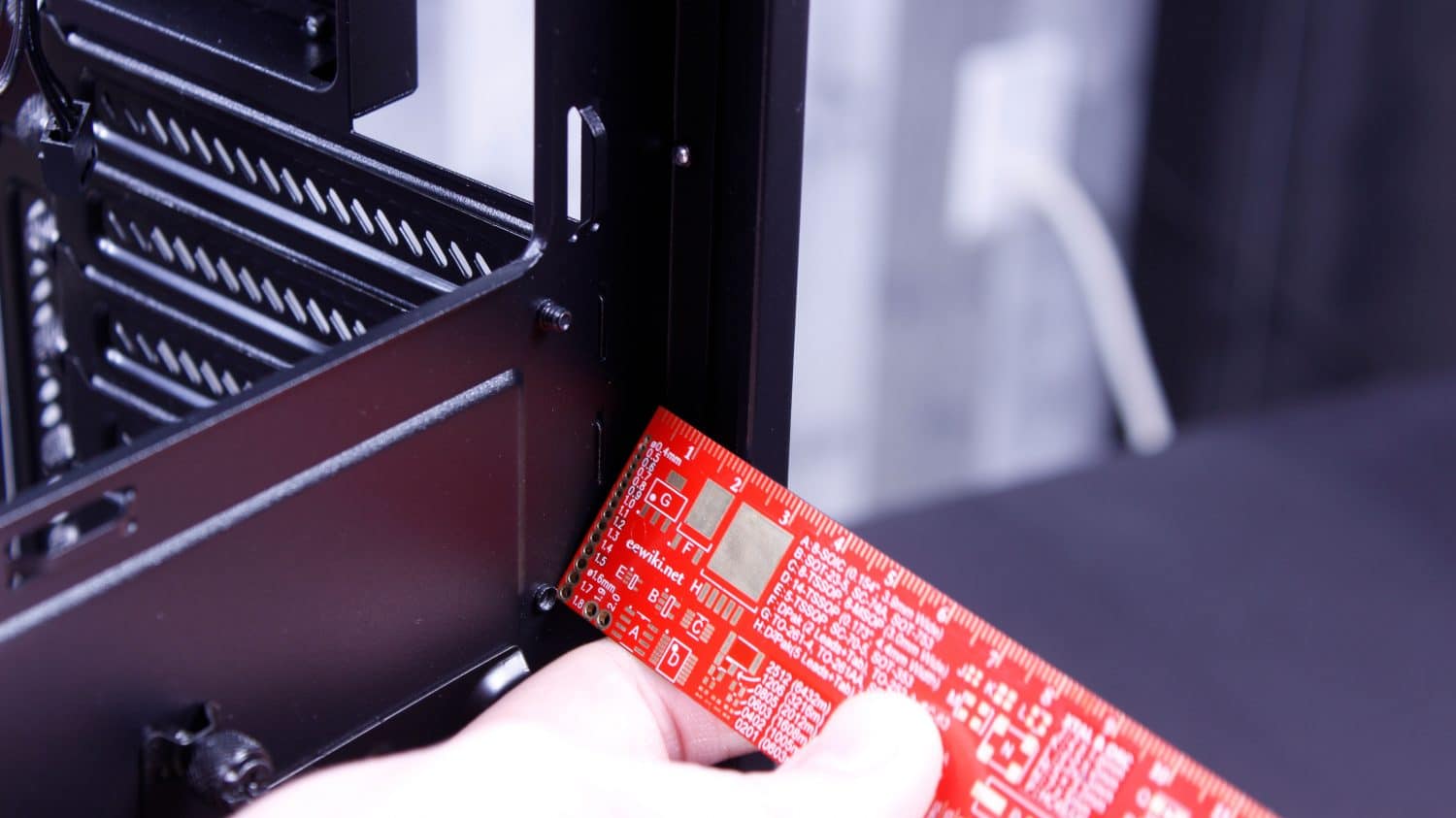 For checking the cable management space I have the “keycap rule”. If you cannot fit a keycap comfortably into the cable management gap its nit wide enough for enthusiasts. As you can see it is more than enough. P{ulling out the PCB ruler verifies we have just shy of 20mm at the lip with some areas losing a few millimeters here and there but overall plenty to hold all but the most demanding fat sleeved cables.