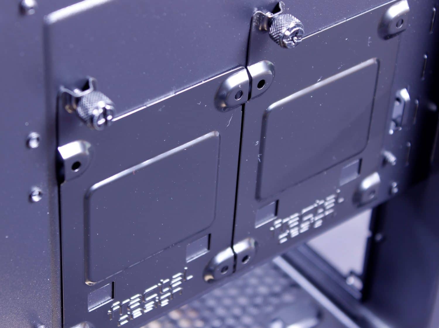 The 3.5″ tray requires inserting rubber grommets and then screw through them to mount larger mechanical drives.