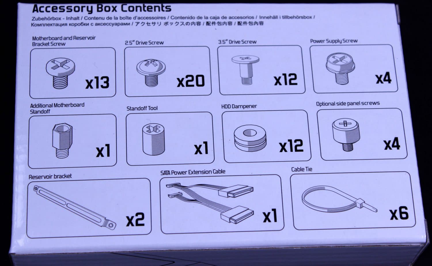 This is pretty standard fare for a chassis with the addition of the reservoir brackets and the SATA Extension.