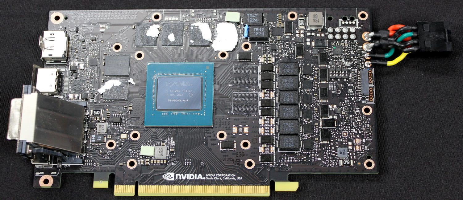 Here is the same TU106 die (you cannot see the changes for 1060 as they are internal), it is noticeably smaller than it RTX powered bigger brothers and understandably so as it has much less going on under the hood with only 3 GPCs. the total die size is 445 mm² whereas the RTX 2080 comes in at 545 mm² and the monolithic RTX 2080 Ti tops out at 754 mm². The only way to really tell this is an RTX 2060 and not a 2070 is that this GPU is labeled TU106-200A-KA-A1 whereas the RTX 2070 We showed previously was TU106-400A-A1.
