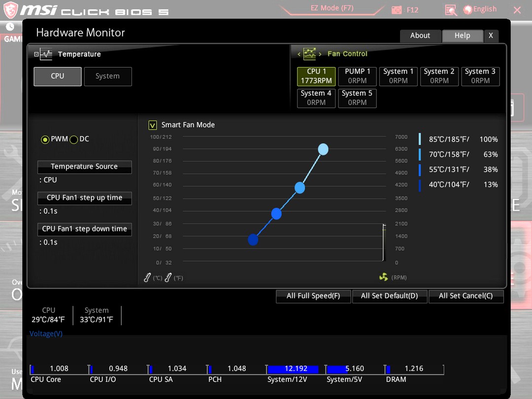 The hardware monitor area is where you will find the monitoring along with the smart fan settings as you can see above.