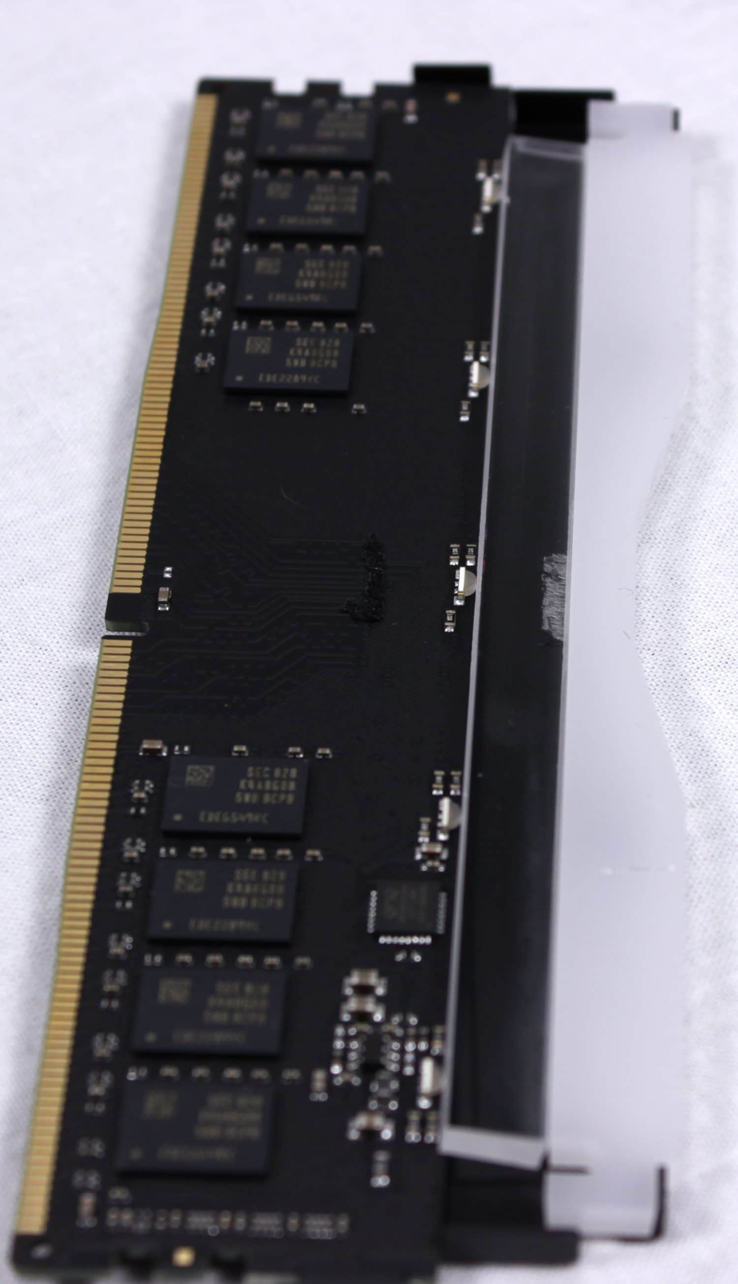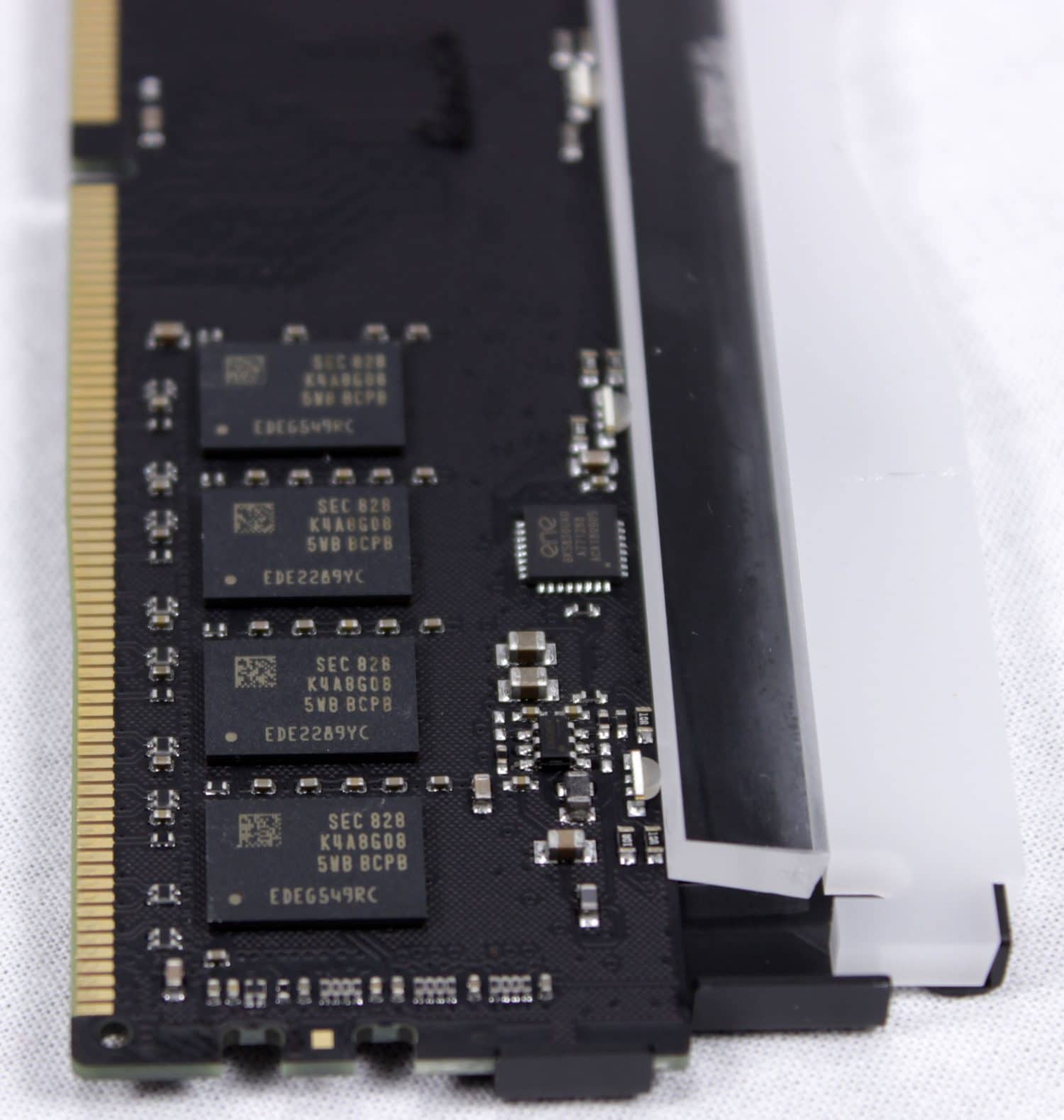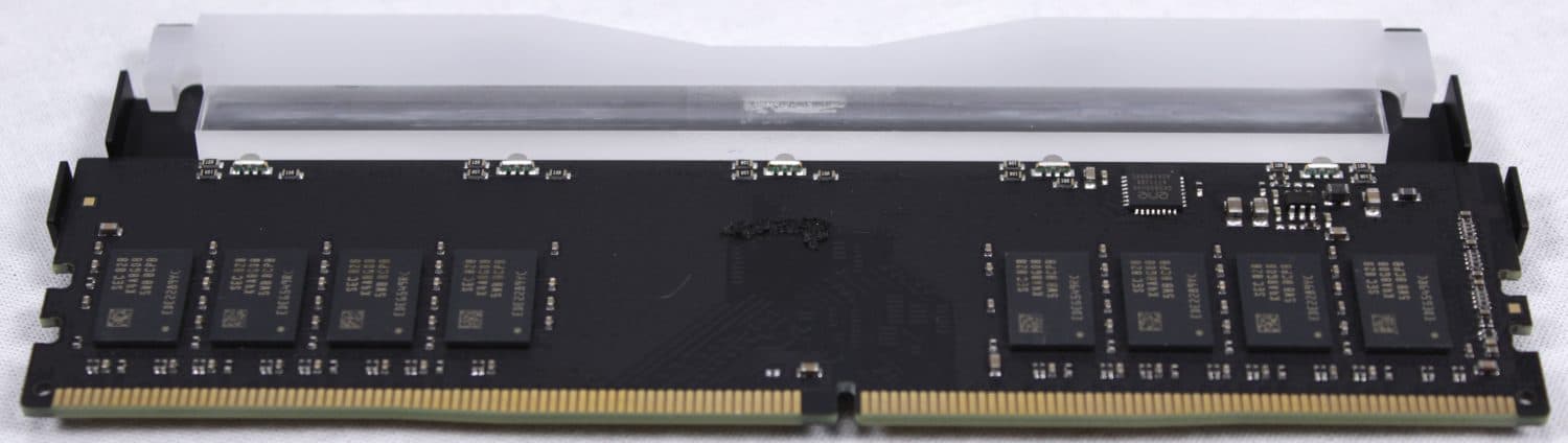 Upon removing the heatspreaders you can see that the DIMMs are a fairly standard layout with confirmed Samsung B-Die IC’s. This is good as it means much better compatibility with AMD Ryzen systems and also better overall overclockability if they are good. even though they are B-Die, unfortunately, you cannot always guarantee they are “good B-Die” until you run them through their paces to see how far they can scale.