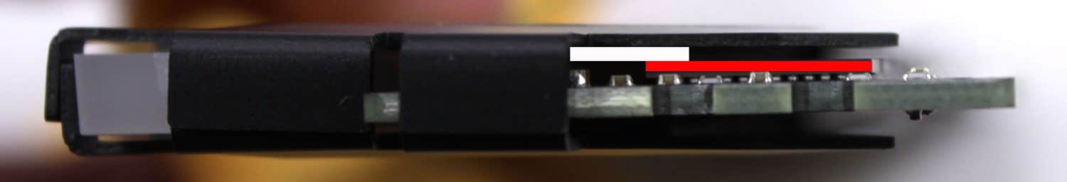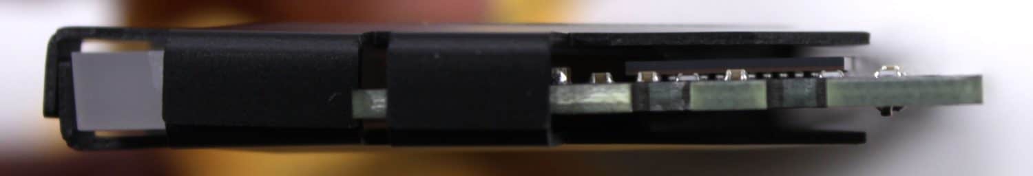 When removing the heatspreaders I was a bit surprised to realize the thermal interface between the IC’s was on at an angle which as you can see does not make much contact on some of the DRAM IC’s. This is not a huge deal as the thermal wattage of these are so low that they honestly would run cooler without a heatspreader to trap errant thermals in it. I just feel it’s worth mentioning as it seemed rather silly to even use a thermal interface if it only touches the edge plastic of the IC and not really the center die where any relevant heat would generate from.