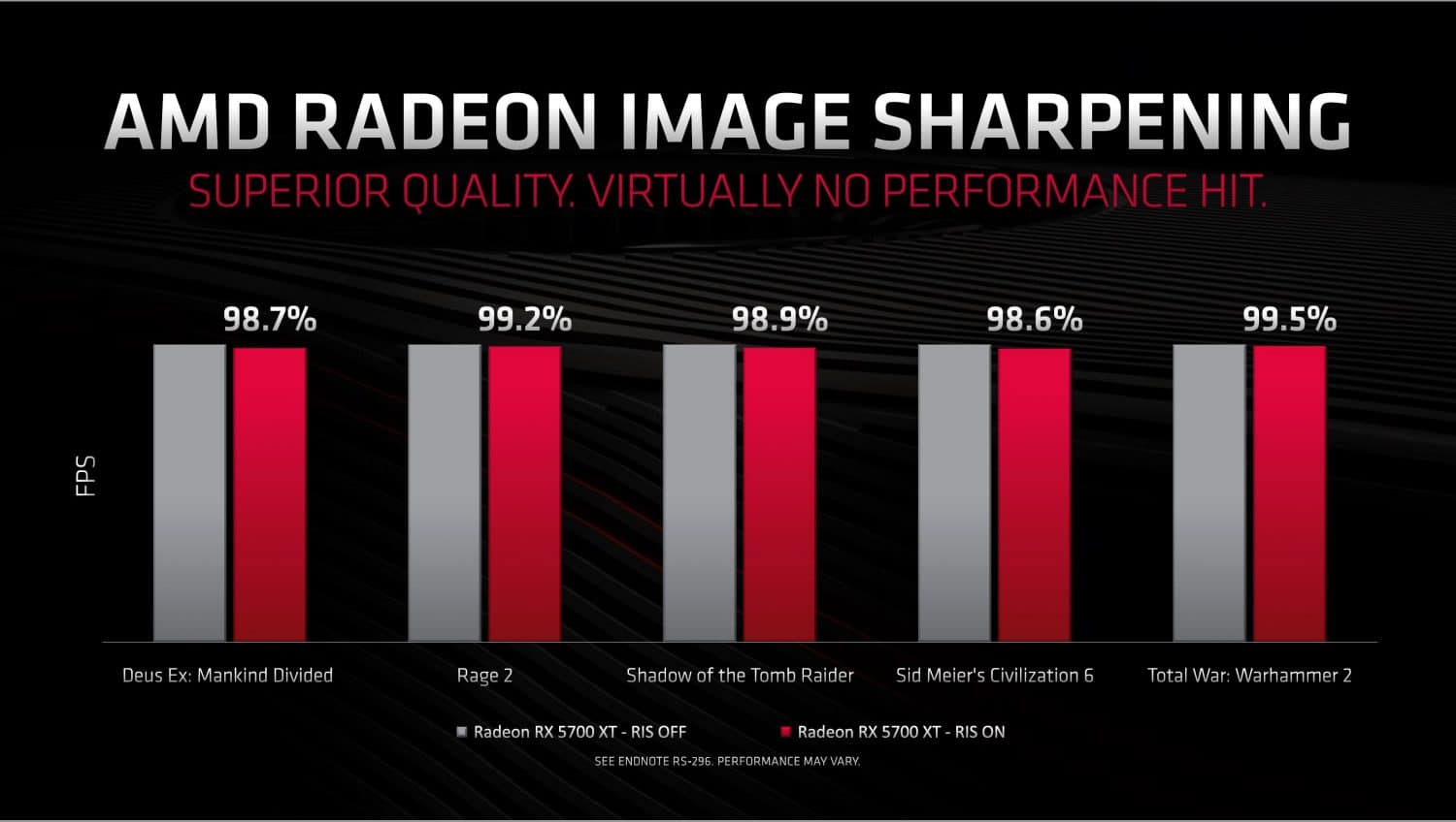Here we have another sharpening mode called Radeon Image Sharpening and while the FidelityFX focused on small areas for adaptive sharpening the Radeon image sharpening takes it further. they claim that running the Radeon Image Sharpening has a menial or even no impact in performance which if true is great. But once again this goes to show where rather than chasing top FPS, RTG is focusing on improving visuals for gamers which is a good and bad thing. I am ok with adding stuff to create a visually pretty game similar to RTX and its features but I do question how much of a difference it really will make to gamers as most of the time in many games we are darting around place to place and not really looking at the sharpness of lines on specific surfaces. That’s one of the reasons I truly enjoy DLSS is that the sharpness issues/artifacts don’t really bother me as they are rarely noticeable in actual gameplay.