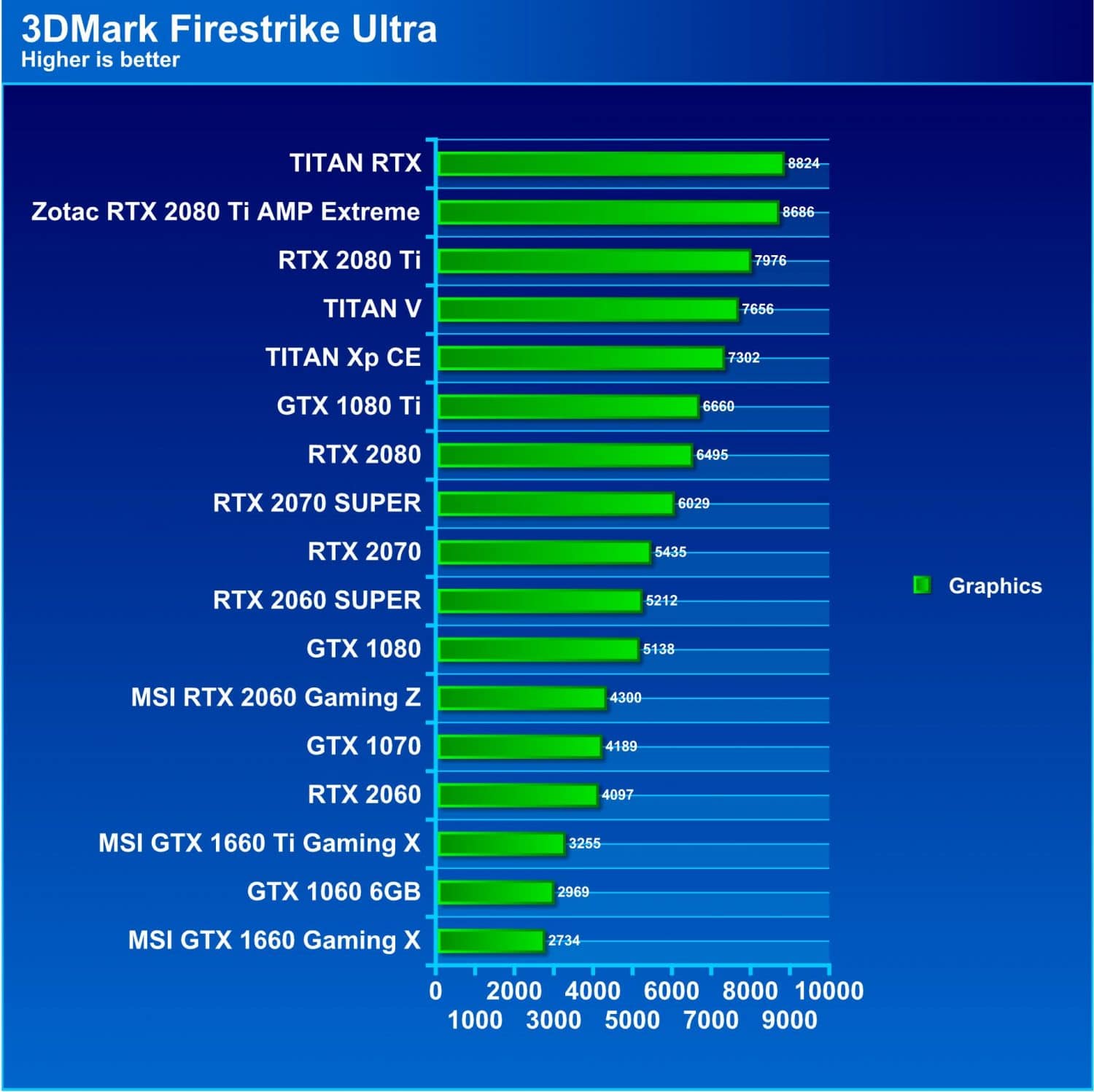 Blue, as I said, is “insane mode” and it shows as the 2060 SUPER is now in between the RTX 2070 and RTX 2070 with the higher memory PAscal offerings moving further up the chart. The RTX 2070 SUPER falls in line behind the RTX 2080 once again easily eclipsing the TITAN Xp and GTX 1080 Ti.