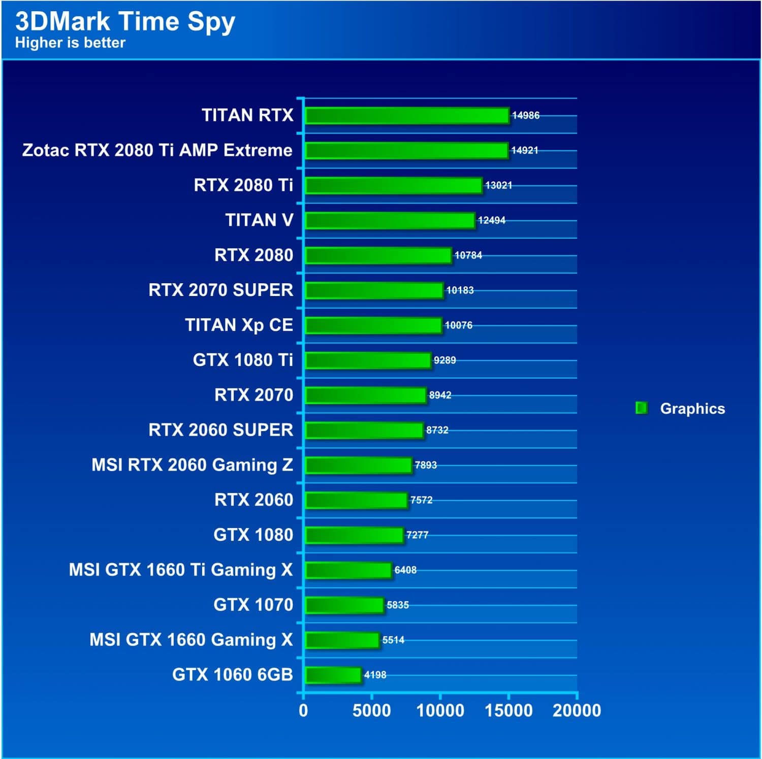 Cyan, we see that the RTX 2060 SUPER surpasses the 1080 Ti and shows a wide lead over the 2060 FE. The RTX 2070 SUPER is well ahead of the TITAN Xp and a bit shy of the RTX 2080.