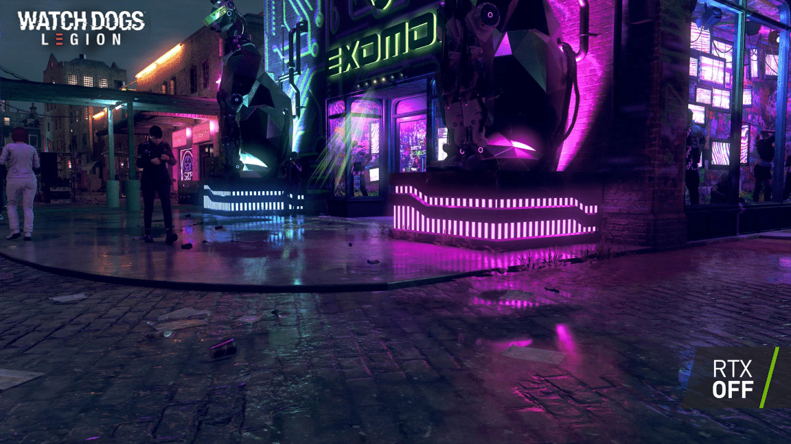 Here we have the Nvidia supplied RTX ON/OFF demonstration. While the RTX off scene still looks plenty nice, so users of non-RTX cards will still have a fulfilling experience with the title, when switching RTX on, it simply brings things to a completely new level where the depth and immersive nature of the scene from the light scatter and reflection quality fo any surface deemed reflective looks admittedly stunning. I think for those choosing Watchdogs Legion, in RTX if this look holds true to the actual gameplay will be one of the proofs needed to show hold outs that RTX may be worth diving into.