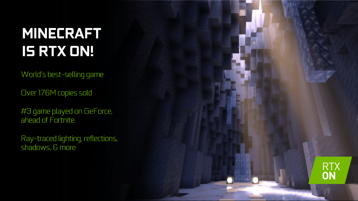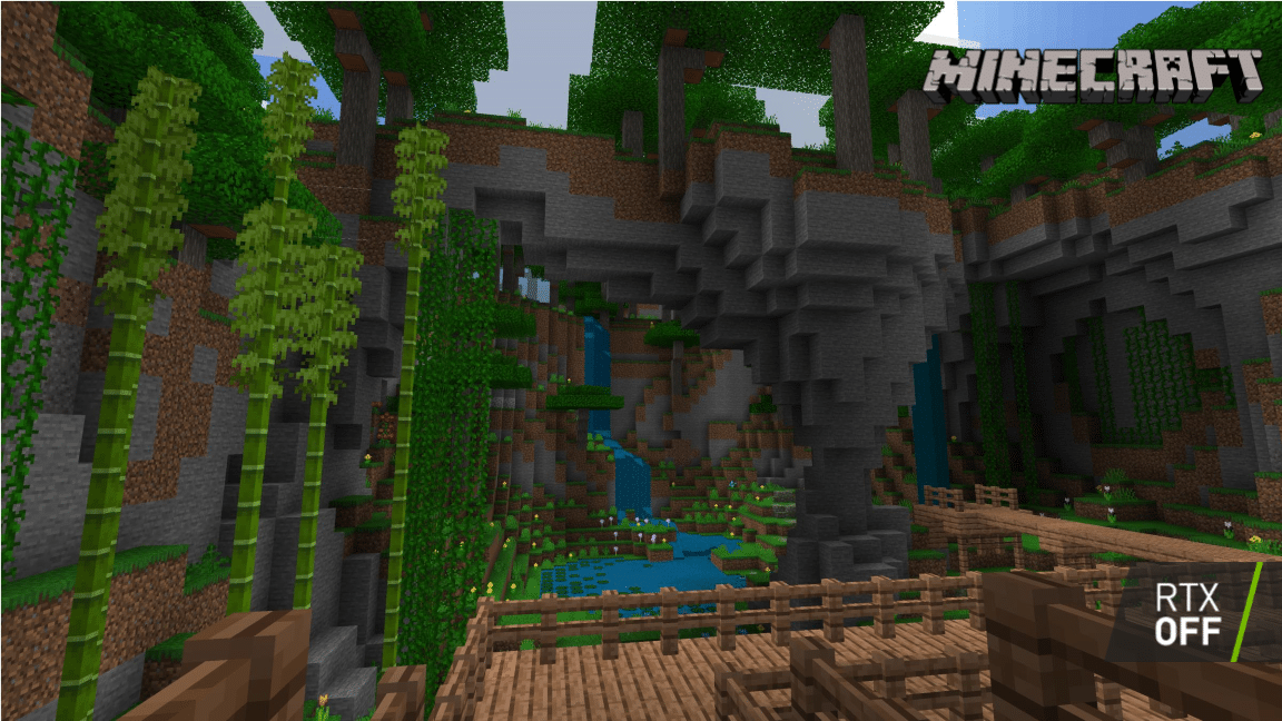 Here we have it, Minecraft, now (or soon) to employ DXR/RTX support allowing for proper lighting, shading and reflection techniques for RTX card owners. This has been somewhat possible previously with various shader and texture modifications that made the game exhibit various adjustable rates of realistic lighting with a heavy performance tax. I am interested to see once it is available how it will perform. One thing to note is that ‘realistic lighting’ or the such can be great buzzwords but don’t really create a mental image of the difference so you have that above. The non RTX image is vanilla Minecraft which has everything evenly lit in a similar manner. The RTX on image shows full path traced lighting and pretty strong light shafts/god rays. I do hope that is adjustable as while it is somewhat realistic the light shafts almost feel distracting to the environment like they are too prominent.