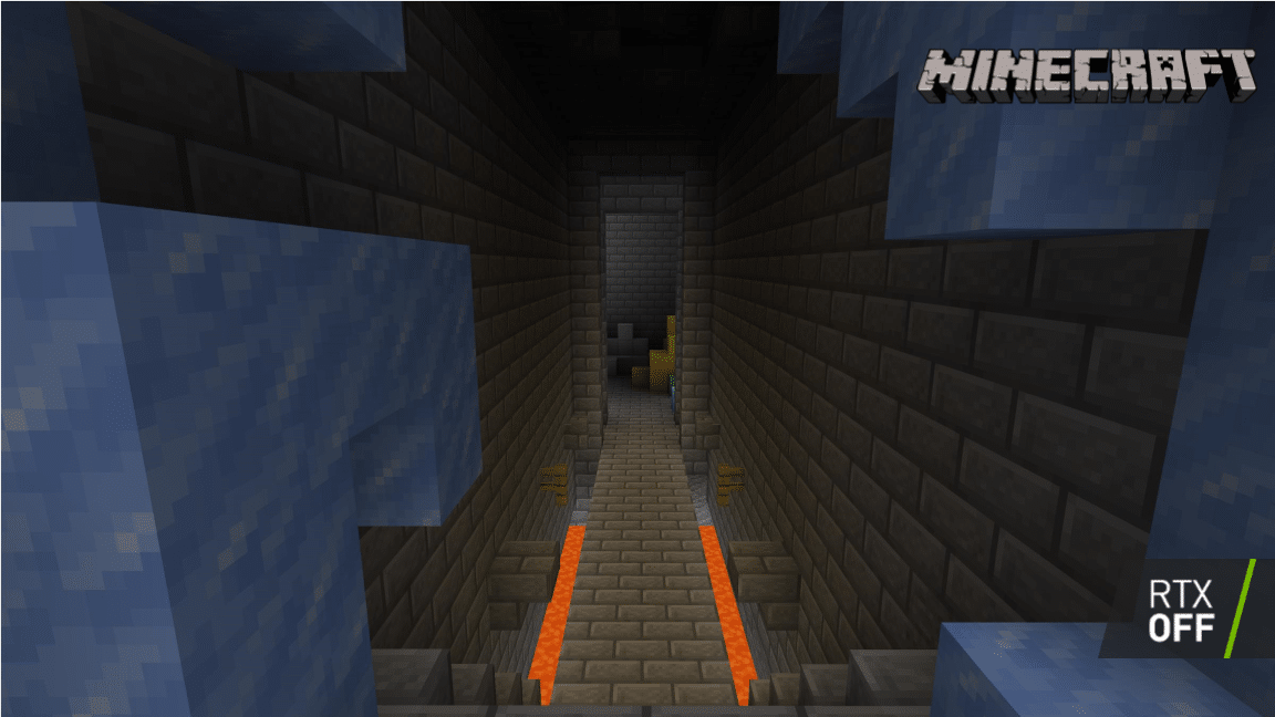Here we have another representation of not just light shafts but the ambient illumination from the lava below. default the textures feel flat with very little if any light effects coming from the illuminated lava. When you switch to RTX enabled it is a stark difference in depth for the textures and realism along with the lighting creating what looks to be a more immersive environment. Before we step away from Minecraft to talk about some of the other game announcements, I want to say that if someone had told me that Minecraft was getting the RTX treatment. I likely would have replied with meh, or not really given it much of a thought as Minecraft had never really been about the visuals. However, after looking at the video and stills Nvidia showed off, it truly is a sight to be seen, and I am waiting very impatiently to give it a shot myself.