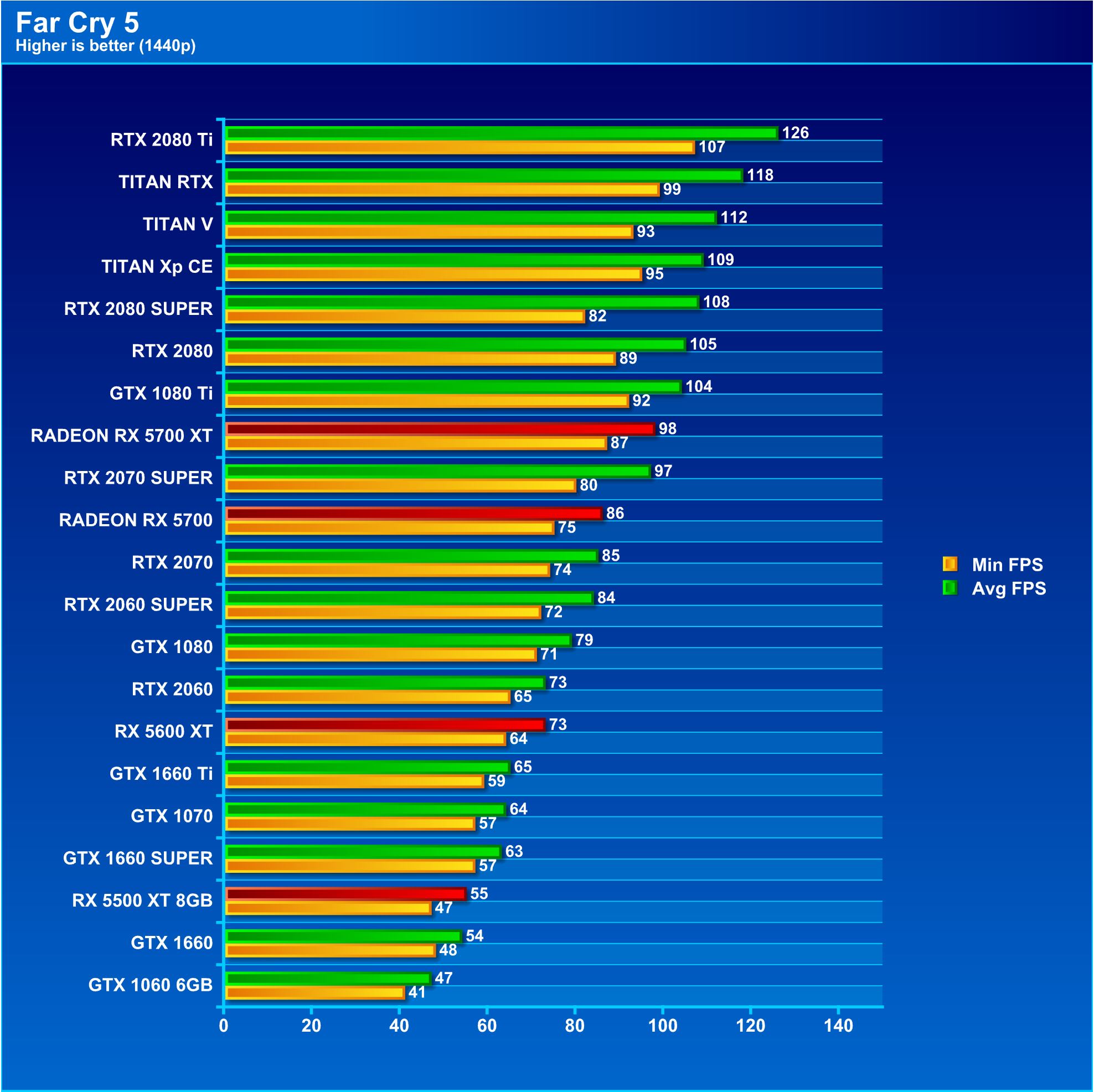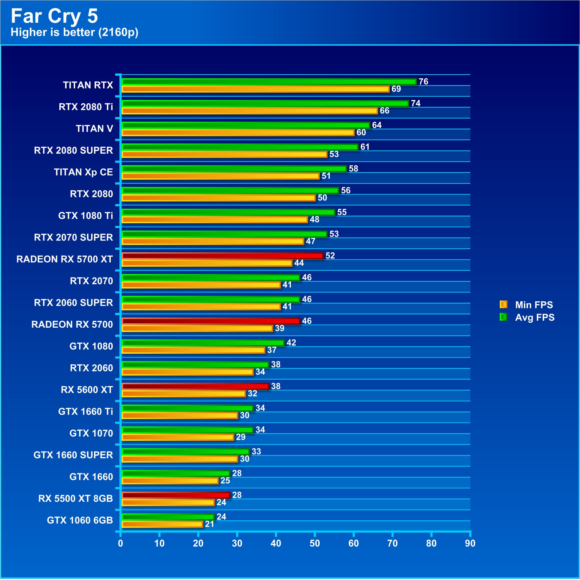 Far Cry 5 shows the RX 5600 XT pulling ahead of the RTX 2060 at 1080p but it quickly falls back into line and is more of the same at 1440p and 4K. This is interesting as this card is targeted at 1080p and it seems to do quite well there.