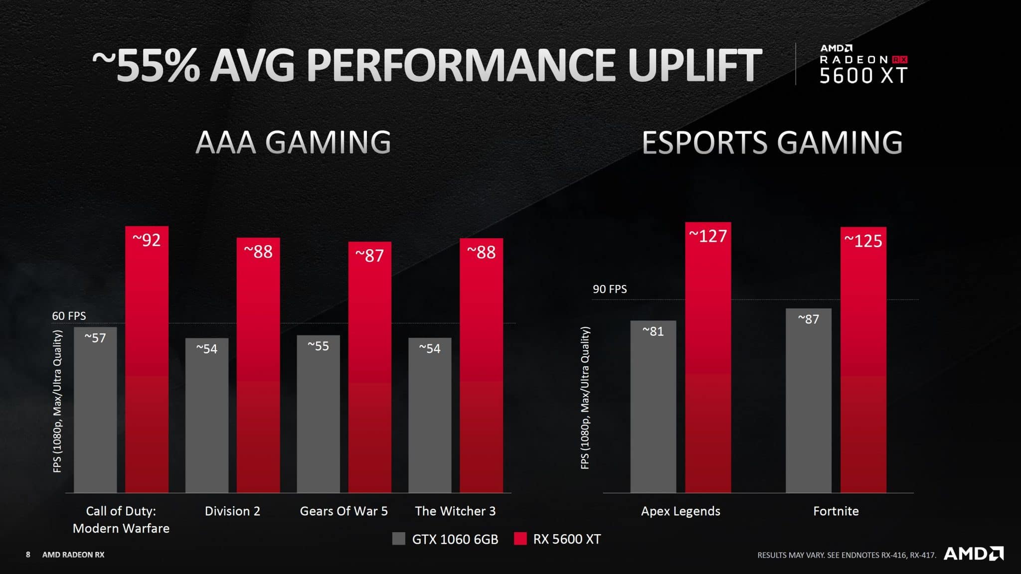 As evidenced by the launch presentation deck, it shows that AMD had targeted 1060 users, which is the bulk of the gamers, according to Steam’s hardware survey, along with comparing their upgrade path expectations compared to the competing current-gen cards from NVIDIA, the 1660 Ti and 1660 SUPER.