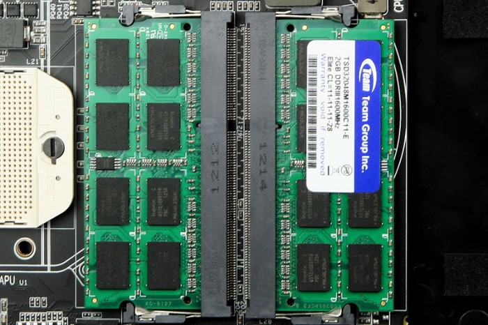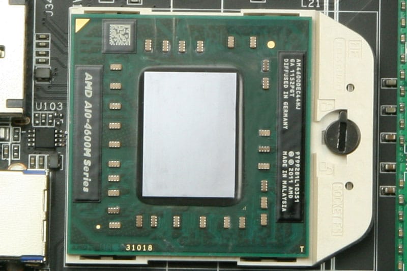 Compared to Llano, the GPU on the Piledriver has been upgraded with the VLIW4 architecture, the same that is found on the HD 6900 series GPUs. On the A10-4600M we find the HD7660G features 384 Radeon core clocked at 496 MHz and Turbo to 685 MHz. To the North of the APU is the AMD A70M FCH chipset and to the East is two dual-channel DDR3 SoDIMM slots which Arctic includes two sticks of 4GB DDR3-1866 from Team Group in our review unit. The AMD A70M Fusion Control Hub (FCH) is responsible for the two 6 Gbps SATA ports in the unit. In addition, it is also responsible for the USB 2.0 and USB 3.0, video output, and the Gigabit Ethernet.
