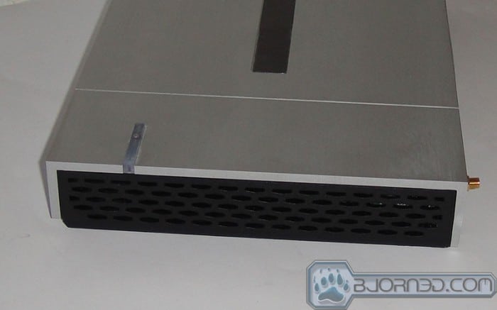 The MC101 is designed with a mixture of plastic and metal. The bottom is made of plastic but the top and the sides are made with a single piece of aluminum that acts as a heatsink to help dissipate heat. As an HTPC, the MC101 has a very subdued exterior with a brushed aluminum body devoid of any LED light except a single power switch LED located on the top of the unit. The unit should blends in quite nicely into your home entertainment setup.
