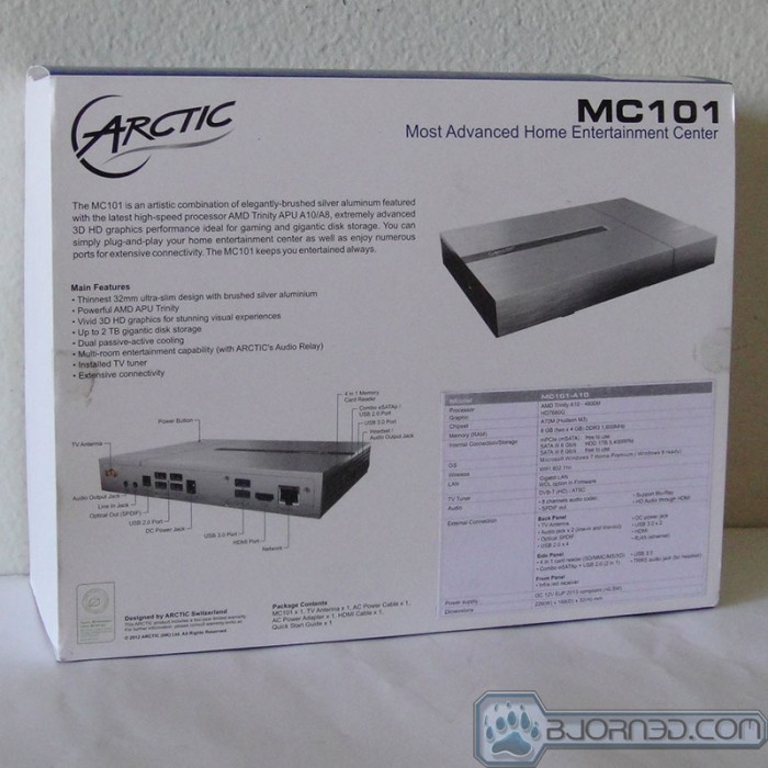 Arctic’s latest home entertainment system user an AMD A10-4600M APU, bringing a powerful combination of CPU and GPU in a tiny little box. Packed with WiFi, TV Tuner, 8GB RAM, and 1TB of storage, the MC101 brings us plenty of power for our media needs and is also able to deliver decent gaming performance.