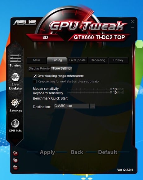 There are many tools within the GPU Tweak menus some a little more hidden than others. First off directly form the GPU Tweak utility itself you can check for BIOS updates and even update from within the program. For anyone who’s ever updated a vBIOS before knows that having a tool that can do this in a mere few clicks is really handy.