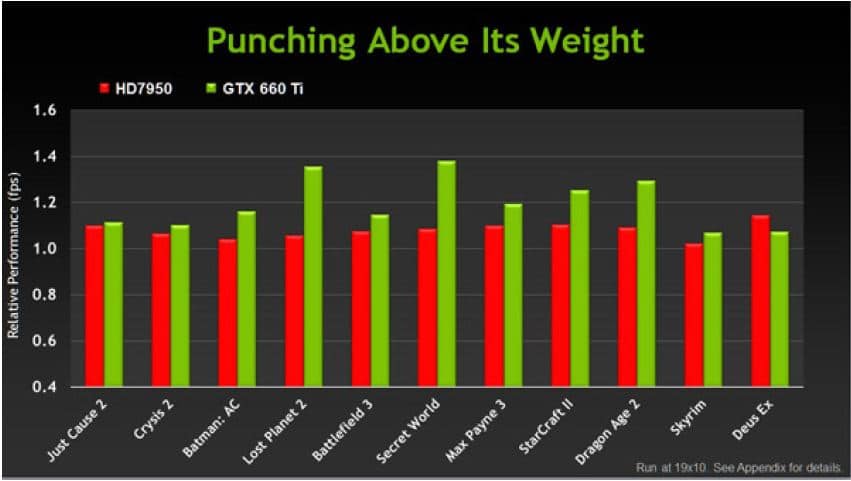 Once again data provided by Nvidia shows that compared to the HD7870, the GTX 660 Ti simply wins hands down and by a large margin in some areas.