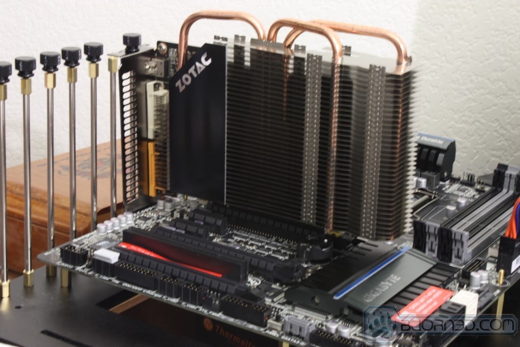 The card in the test bench. No, it is not a mini ITX or mATX system like this card will likely see for the most part, but it was what we had available.