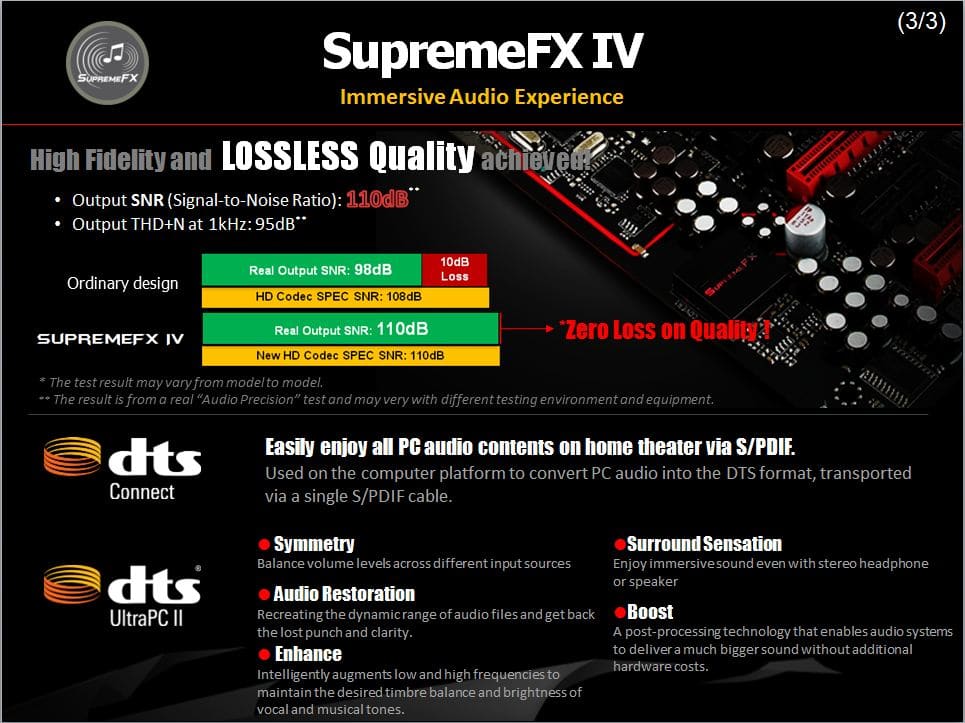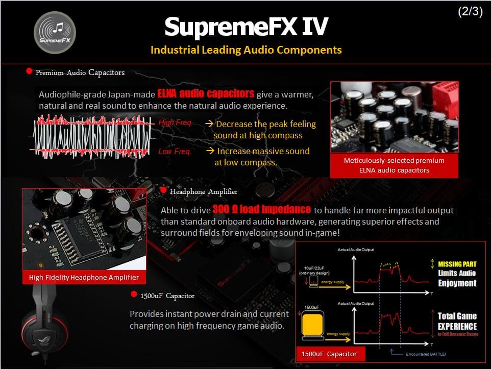 Here ASUS shows the lossless audio of the SupremeFX IV solution compared to a standard audio solution found on some other models.