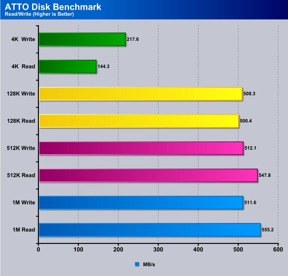 ATTO is one of those tools that most SSD manufacturers use to show the maximum throughput which may not necessarily be obtainable in real world usage but it does show the drives capabilities and possible bottlenecks as well.