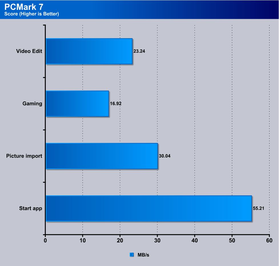 PCMark 7 is the newest benchmark in the Futuremark stable for complete system benchmarking. We did not need the whole suite as we were strictly looking for performance differences in storage so we omitted the normal tests in favor of the storage tests.