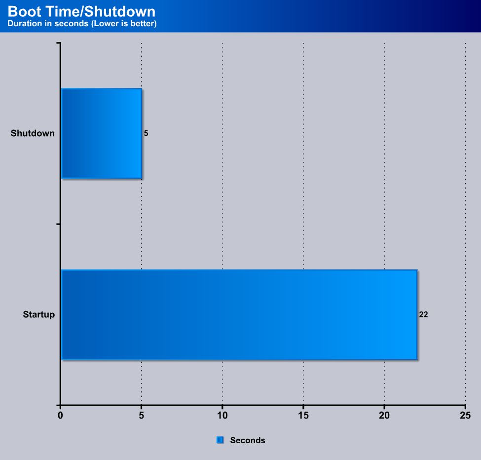 Startup and shutdown times are probably some of the most noticed differences with a SSD upgrade. When you start your system getting it to the boot screen as quickly as possible is the goal of most users and overclocking has always increased productivity and even some boot speed for a long time now but there has always been the old platter drive which was the big bottleneck. With SSD’s this has all changed as we have seen some systems that can now power up from a resume state in a matter of seconds thanks to a super fast SSD.