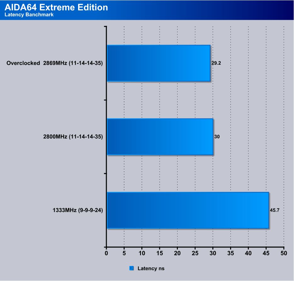 Trying to tighten timings worked a bit on stock 2800MHz frequency and even a bit more if lowering speeds but at 2800MHz I was able to get the timings squeezed down to 11-13-13-34 but the performance difference was marginal and really depends on teh app used as to which setting would net an improvement so we stuck to the Overclocked speed of 2868MHz with the XMP timings to better ensure continuity among testing.