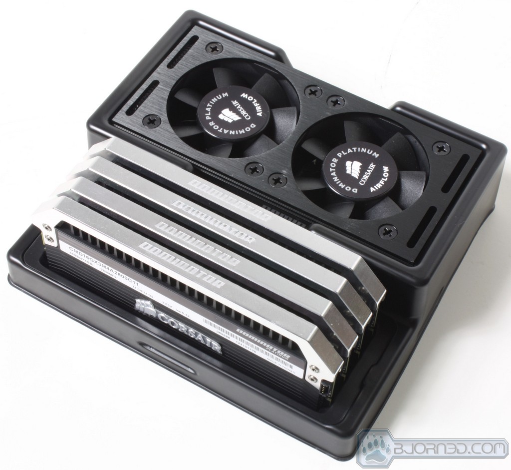 The Dominator airflow fan is the standard design I have seen before and works very well at keeping the DIMMs much cooler than left alone with normal chassis airflow.
