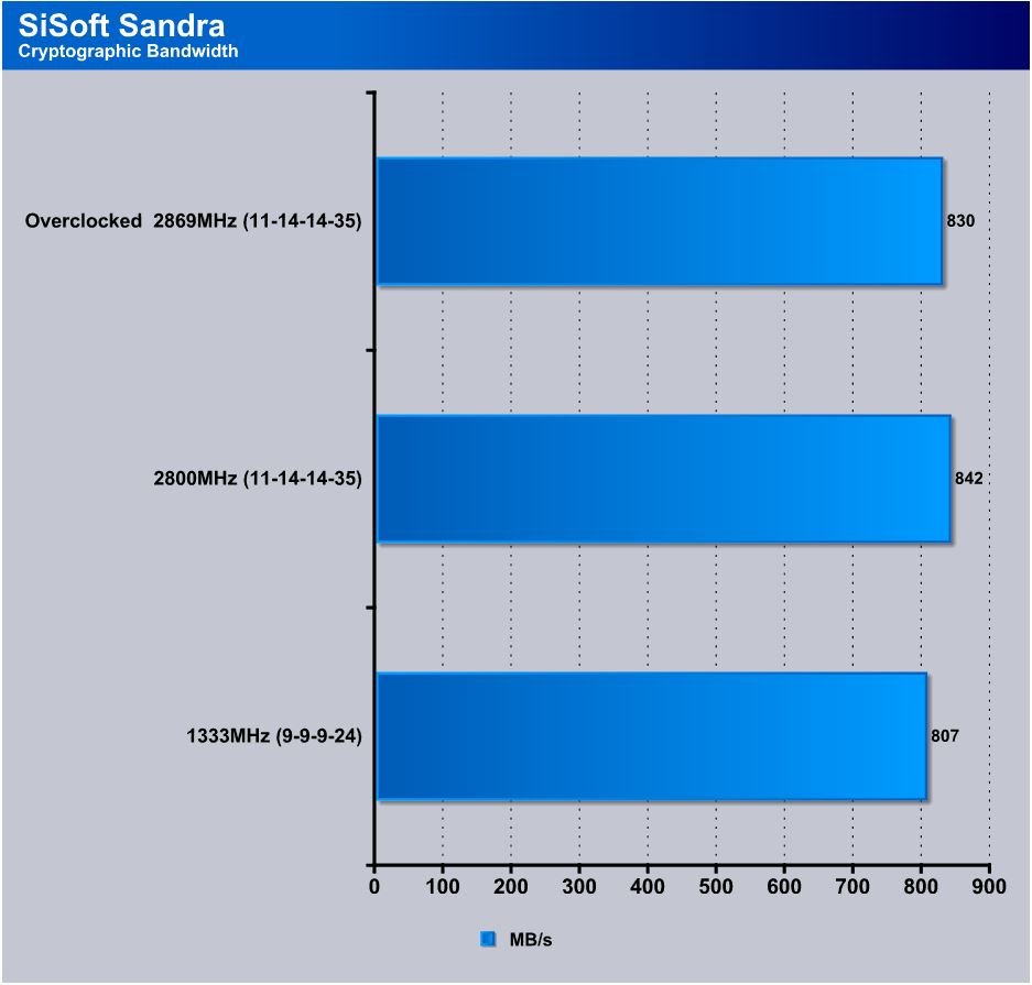 Here we see that going from the 1333MHz SPD default to XMP gives a sizable gain. Raising the speed the small amount we could above the extreme XMP speed we see small improvements which in the end work out to some efficiency improvements overall.