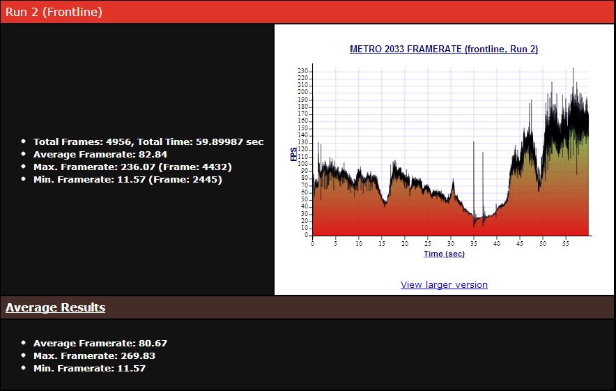 | Metro 2033 (DX11, Very High, 4X AA, 16X AF, no DOF) | 1280 x 1024 | 1920 x 1080 |