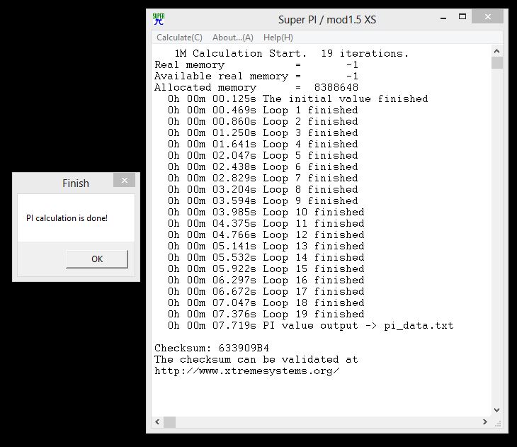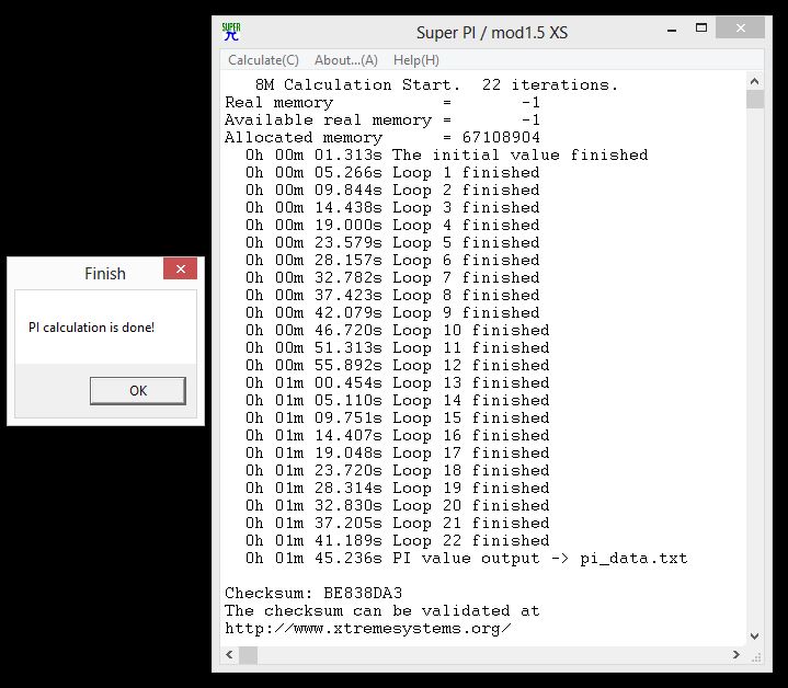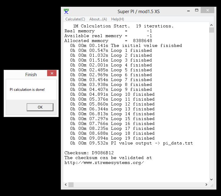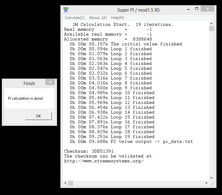 | SuperPi Mod 1.5 | 1M Calculation | 8M Calculation |