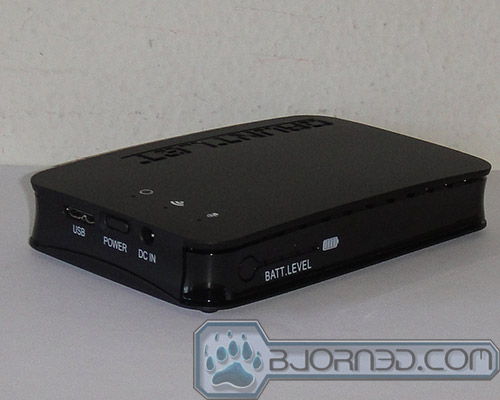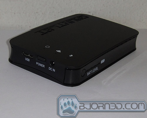 We see on top there are three LED for power, WiFi, and charging. The side has a battery level indicator. The rear of the unit is where we finds the Micro USB 3.0, power button and the DC-IN.