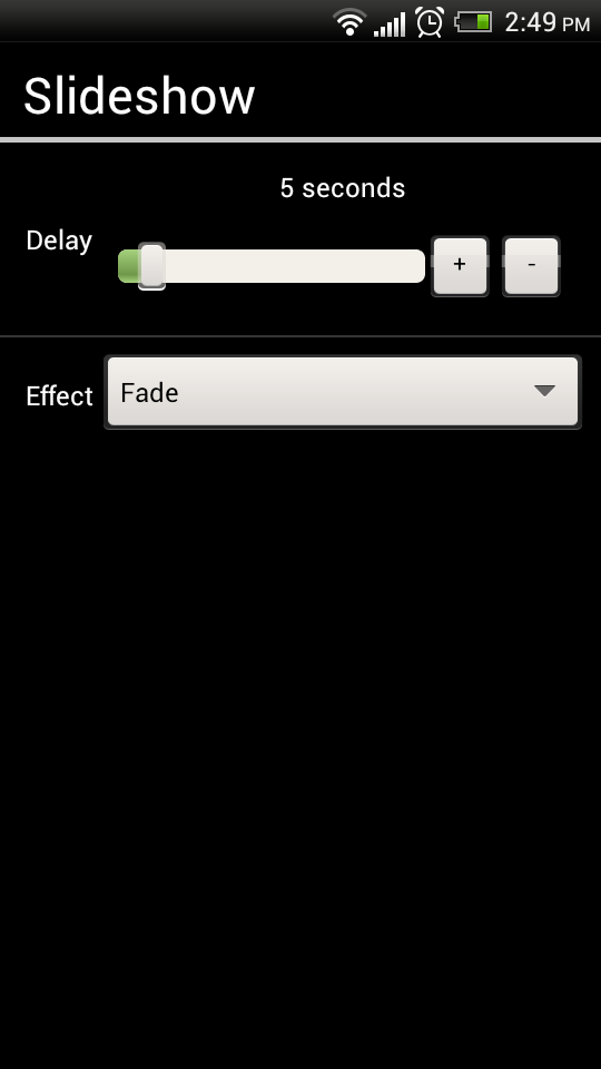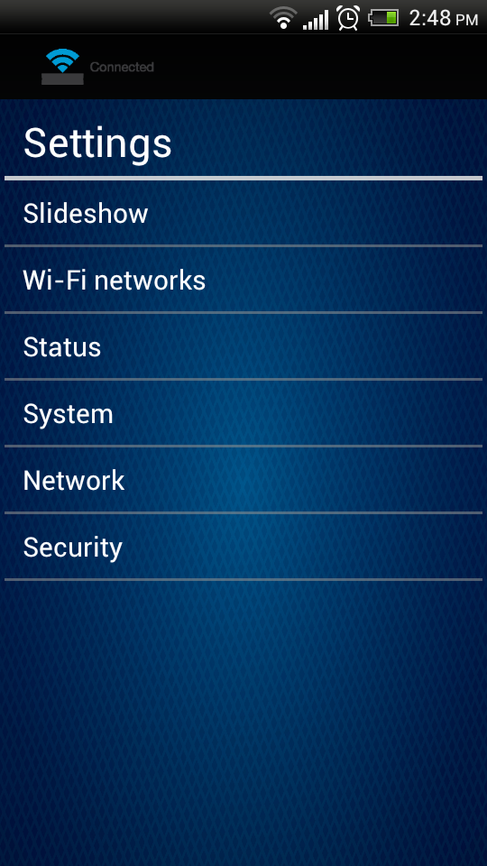 Under the Settings is where we have the ability to adjust the Slideshow delay and effects. Here is where we can also enable the Wifi networks for the bypass mode to allow the Gauntlet to connect to your existing wireless network for internet access. Setting this up is pretty simple as you just select the wireless network from the list and enter the password if there is one and you are ready to go. We did notice that the Gauntlet seems to pick up less available wireless network than our phone will normally do.