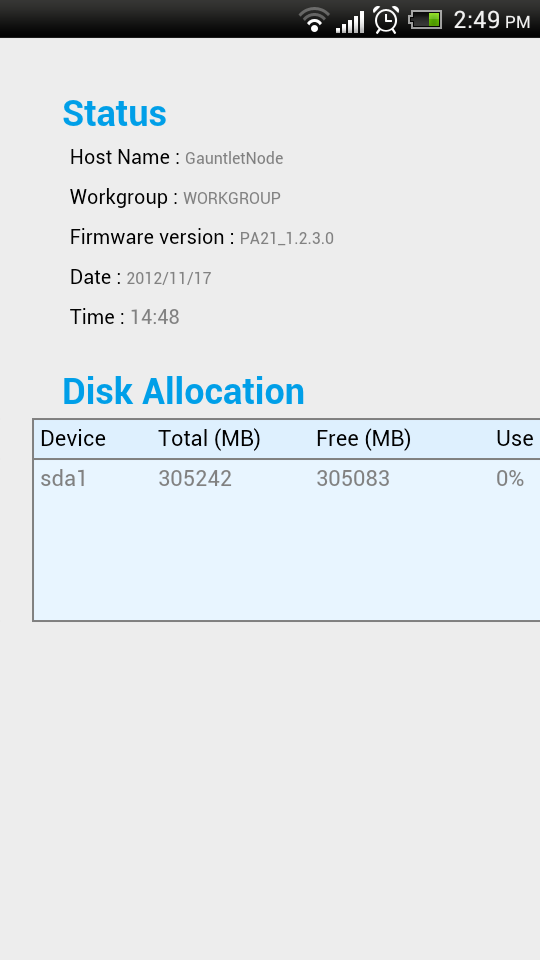 Under Status, we have a quick overview of the device’s firmware and its workgroup and disk allocation. The System is where we have the option to adjust the device name, workgroup, and update the firmware. While it is probably easier to use either one of these settings with a PC as you an see from the image above that the interface does not scale well with our mobile device, we still are able to use it on our phone to flash the firmware. So, even if you do not have a desktop or a laptop, it is not an issue to access these pages. There is no pinch to zoom so accessing the options can be a tad difficult and also the software does not support landscape mode either so you would need to pan the screen to different sections.