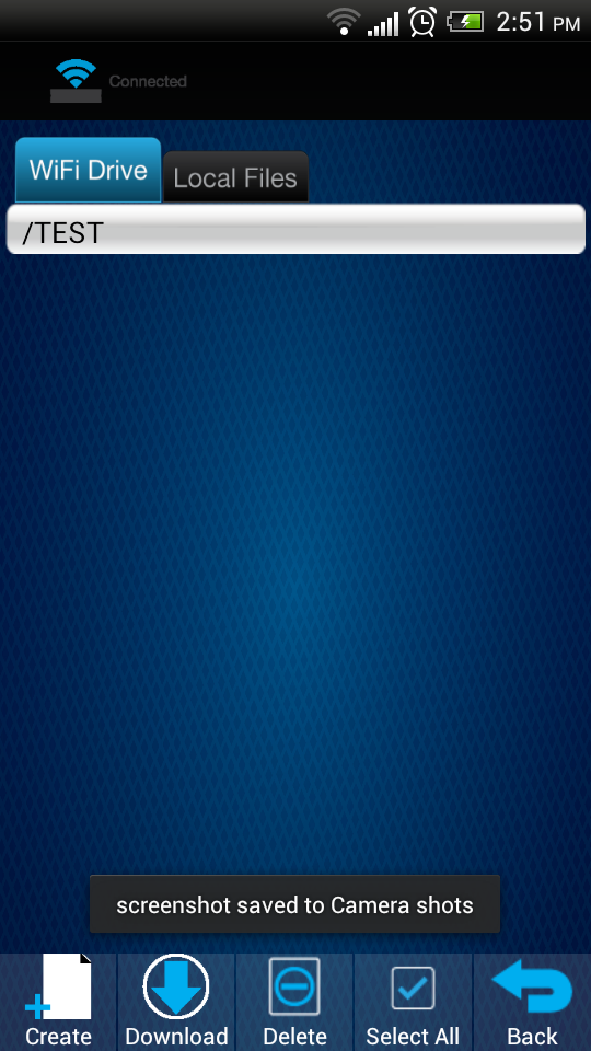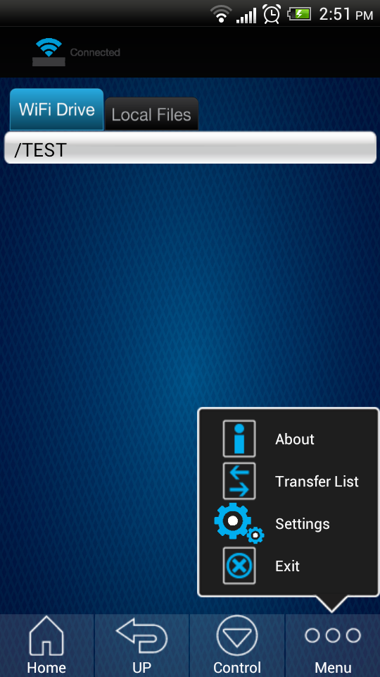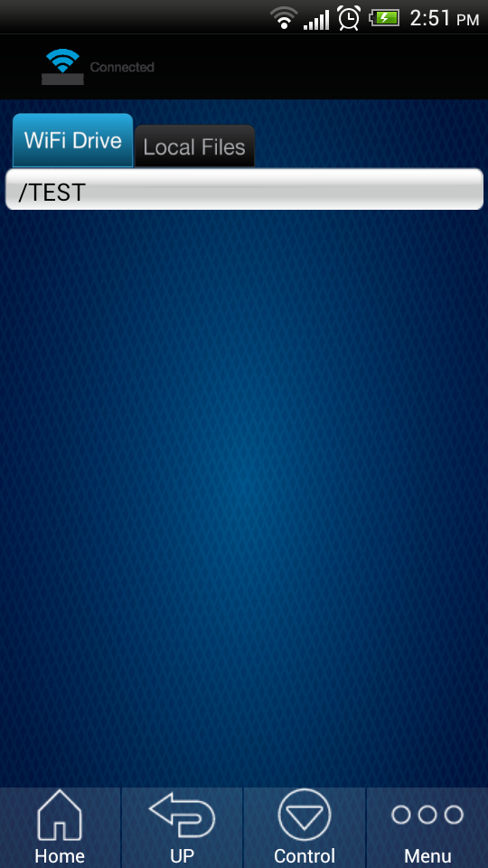 When the Application is first launched, it takes us to the Local Files where you can browse the files stored on your phone/tablet. We see next to the Local File is WiFi Drive where it will let you browse the files saved on the Gauntlet. Switching between the two is quickly. Down on the bottom of the screen is where we will see four more buttons for the Home, Up, Control, and More. The Home will return to the root of the SD card (or root directory on the Gauntlet) and the Up takes us to the previous folder. Pressing the Control will take us to the screen where we can select the files to be transferred. The current version of the Gauntlet software will let you select a folder but it is unable to do folder transfer so you would have to go into each folder and select the files. Somewhat inconvenient if you have tons of folders needed to shuffle between the Gauntlet and your device. Luckily there is a select all option that helped out a little. Simply choose the files to be transferred and hit the Upload and select the destination folder, the file will then flies through the air across the devices.