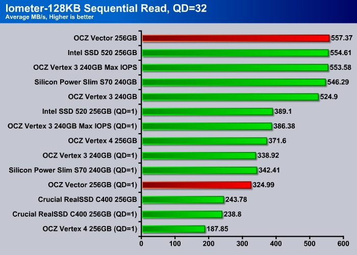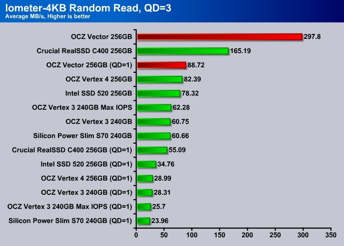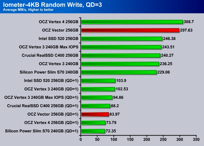 At queue depth of 3, the Vector performs just like the Vertex 4, faster than any other drives on the market.