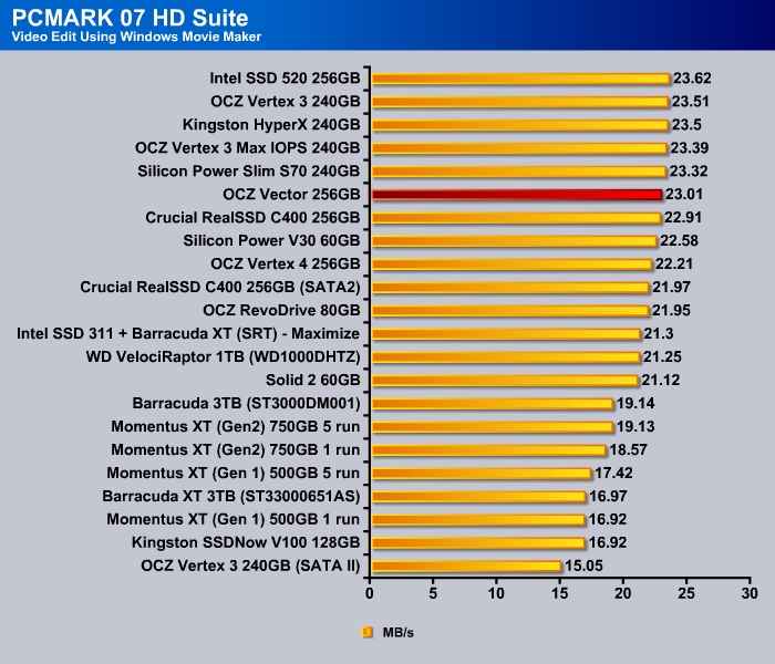 OCZ Vector 256GB OCZ Vertex 4 256GB OCZ Vertex 3 256GB OCZ Vertex 3 Max IOPS 256GB Crucial RealSSD C400 256GB Intel SSD 520 256GB Seagate Momentus XT 750GB |