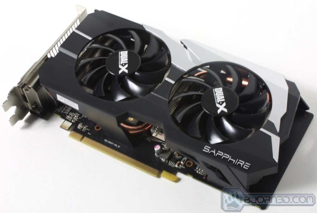 Sapphire Equipped the OC model with the Sual-X cooler design which utilizes a large dual heatpipe fin array with a twin set of high performance cooling fans to ensure that the card runs even cooler than it looks. This is all shrouded with the customary Sapphire rugged designed plastic shroud which adds a taste of style to the card while also directing airflow through the cooling array.