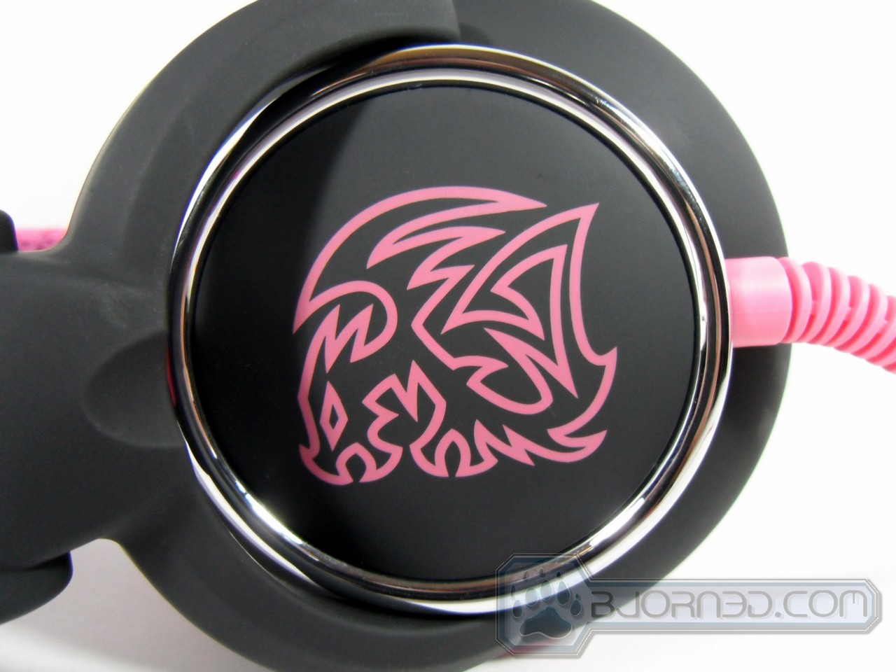 These headphones come in an attractive box with a wide window for viewing. Unpacking it was a little difficult because of the small thin cardboard box that held the cord in place (which ripped a little on the way out). A minor inconvenience. It comes with a cloth bag and warranty information. The first thing that was noticed was the bright color and the loud dragon symbol! Their slogan rings true with this particular product. The head band has a mesh lining on the inside which makes it breathable and comfortable, not to mention eye catching. The smooth faux leather ear pieces also makes wearing these very comfortable, while also attractive.