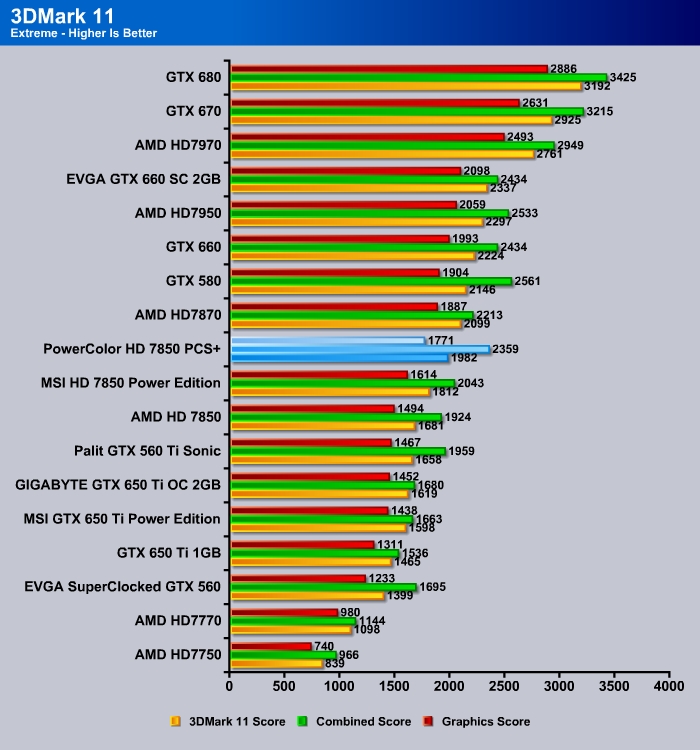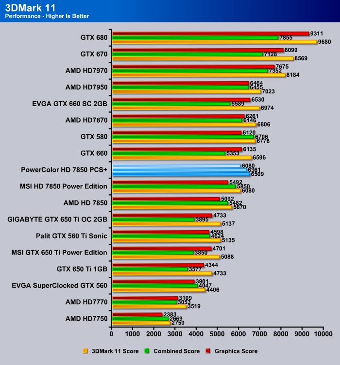 Based on the HD 7850 PCS+ is about 15% faster than the reference HD 7850.