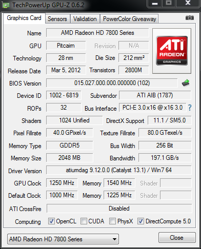 | Specifications | AMD HD6850 | AMD HD7850 | MSI R7850 Power Edition | PowerColor HD 7850 PCS+ |