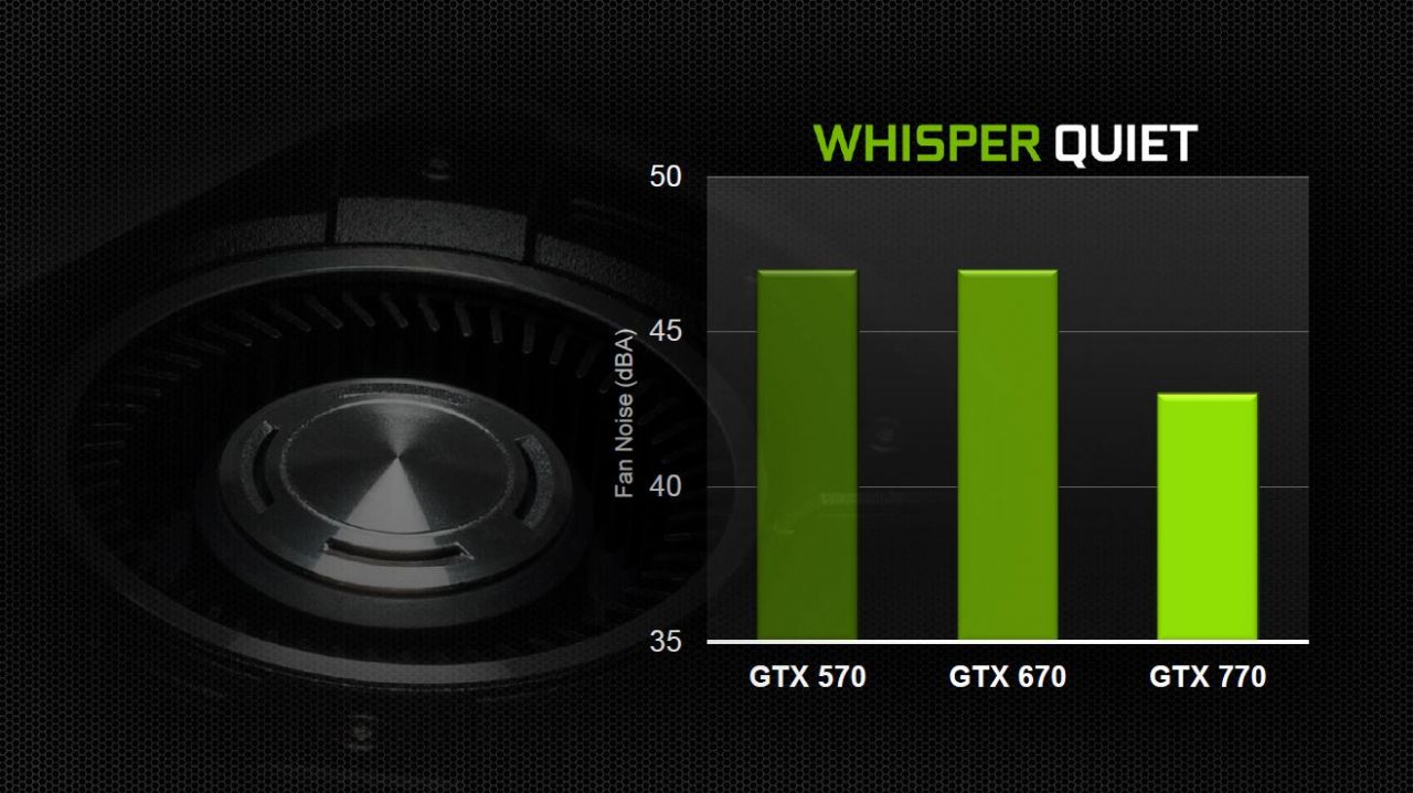 Here you can see how with the new cooler and also the new fan control implimentation Nvidia is setting this up to be a real quiet ultra gaming card. The ability to avoid the constant ramping of the fan drastically lowers the noise level of the fan, is which is what this is all about. Nvidia wants these cards to be able to play in any system, even in a bedroom with the bare minimum of noise while still offering class leading performance.