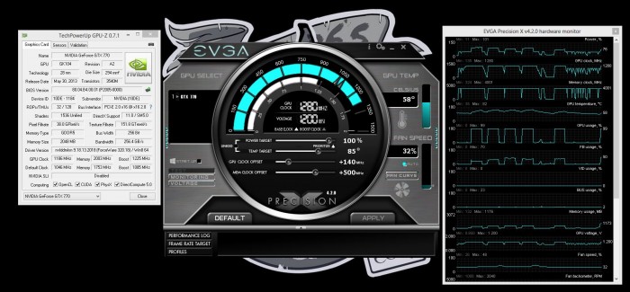 Just as we saw on the TITAN then 780, the 700 series cards carry the new GPU Boost 2.0 which offers even more flexibility in overclocking and even more control over how your card runs. If you want it to only run at a max of a certain temp you simply set that in the thermal target of the EVGA precision utility and the card does the rest. However if you can live with some more heat there is potential for more performance by simply adjusting the frequency and thermal target up a little.